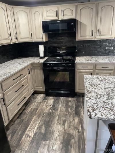 This beautifully remodeled 3 bedroom, 1 bathroom home sits on a flat, waterfront lot with direct lake access, a private boat dock with boat lift. The property includes an asphalt driveway, two-car garage or recreational room, and storage shed. With a brand-new roof, updated electrical and plumbing systems, modern HVAC, and a gas water heater. Updated kitchen with custom granite countertops, rich oak cabinetry, sleek appliances, and thoughtfully chosen hardware and fixtures. Unique engineered wood floors, quality interior doors, cordless top-down/bottom-up cellular shades, and thermal curtains. Whirlpool washer and dryer provide to add convenience. The outdoor spaces is perfect for entertaining features a large back porch with a bar, two concrete patios with pergolas, and breathtaking lake views right from your backyard. Enjoy the 326-acre lake nestled in a welcoming lake community with top-notch amenities.